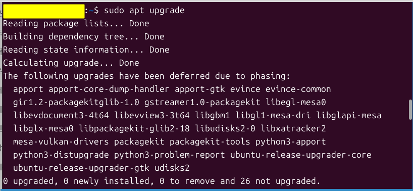 다시 sudo apt upgrade 실행하면 모두 upgrade 될 것이다.